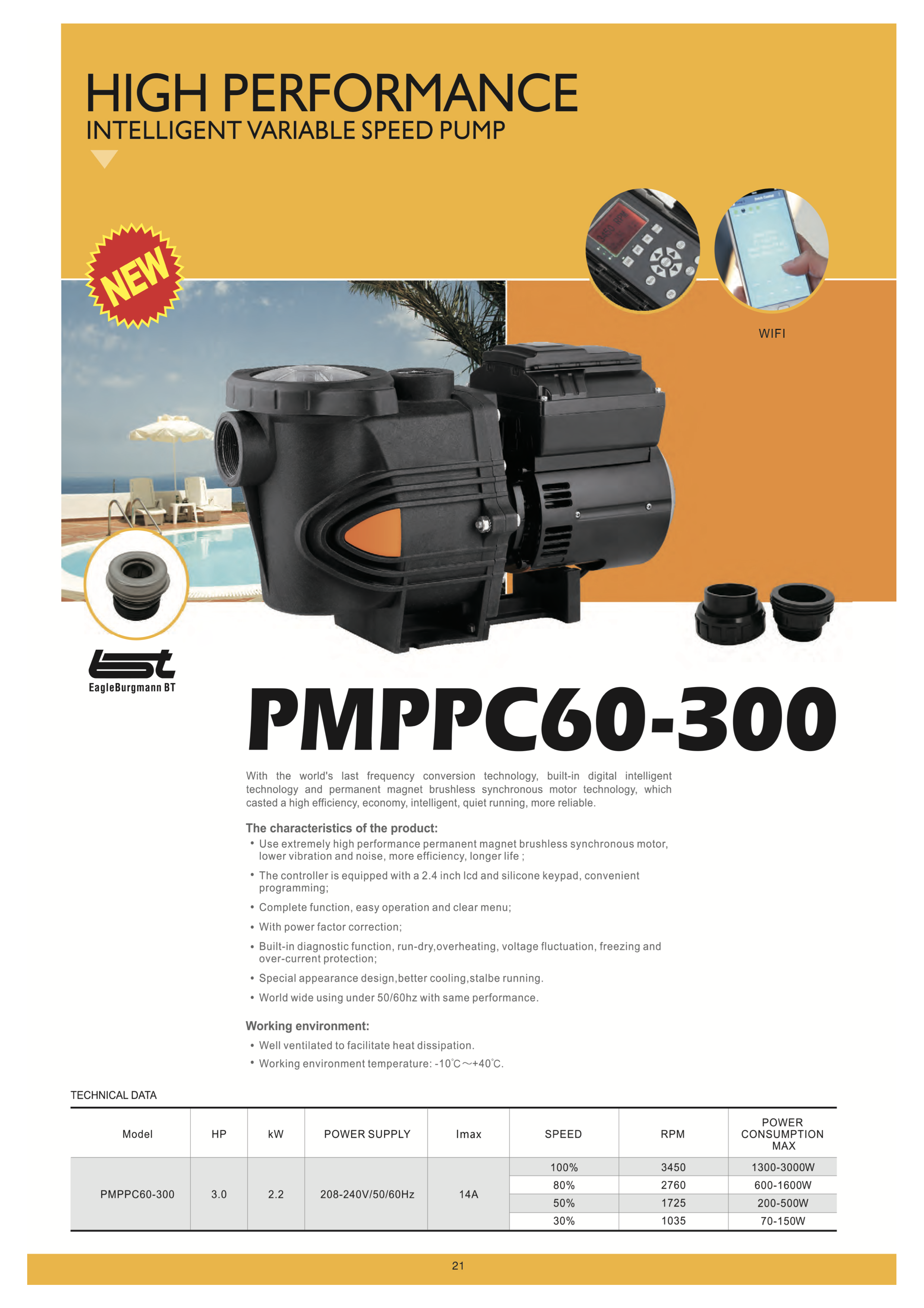 - Built-in diagnostic function, run-dry,overheating, voltage fluctuation, freezing and