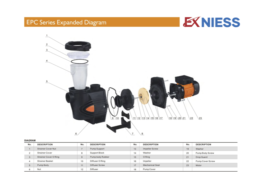 EPC50 Thân bơm, chân bơm và bộ khuếch tán bằng polypropylen thủy tinh.