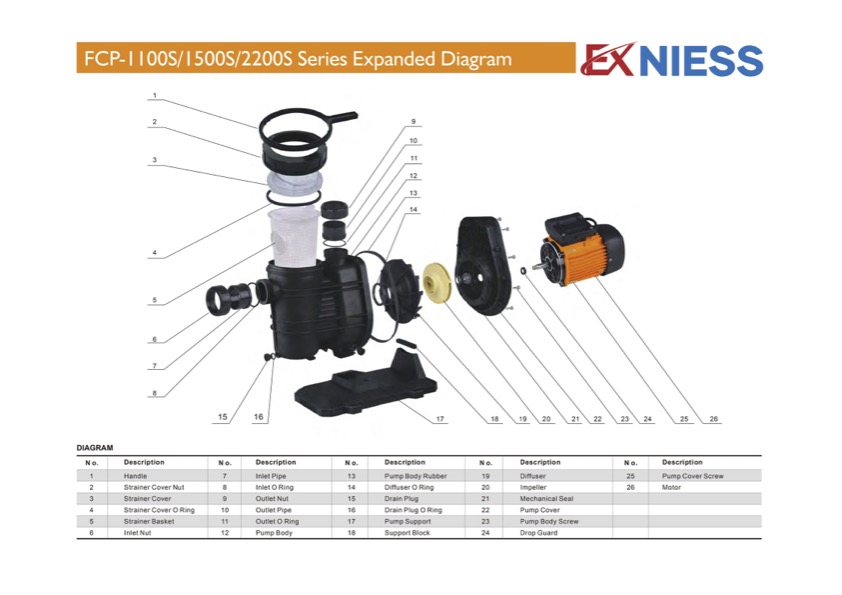 Thân bơm, chân bơm và bộ khuếch tán bằng polypropylen thủy tinh.