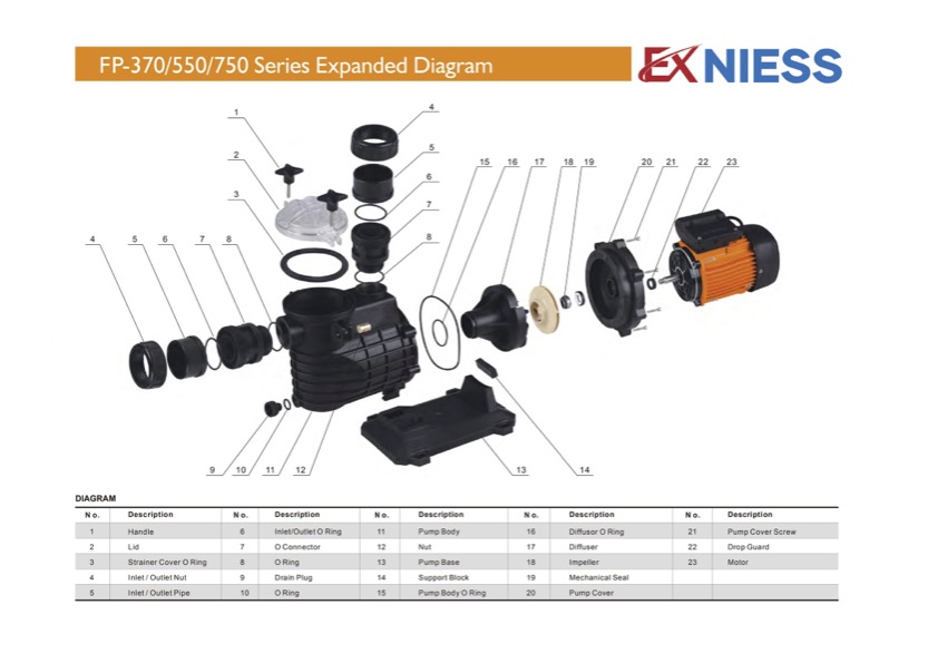 Thân bơm, chân bơm và bộ khuếch tán bằng polypropylen thủy tinh.